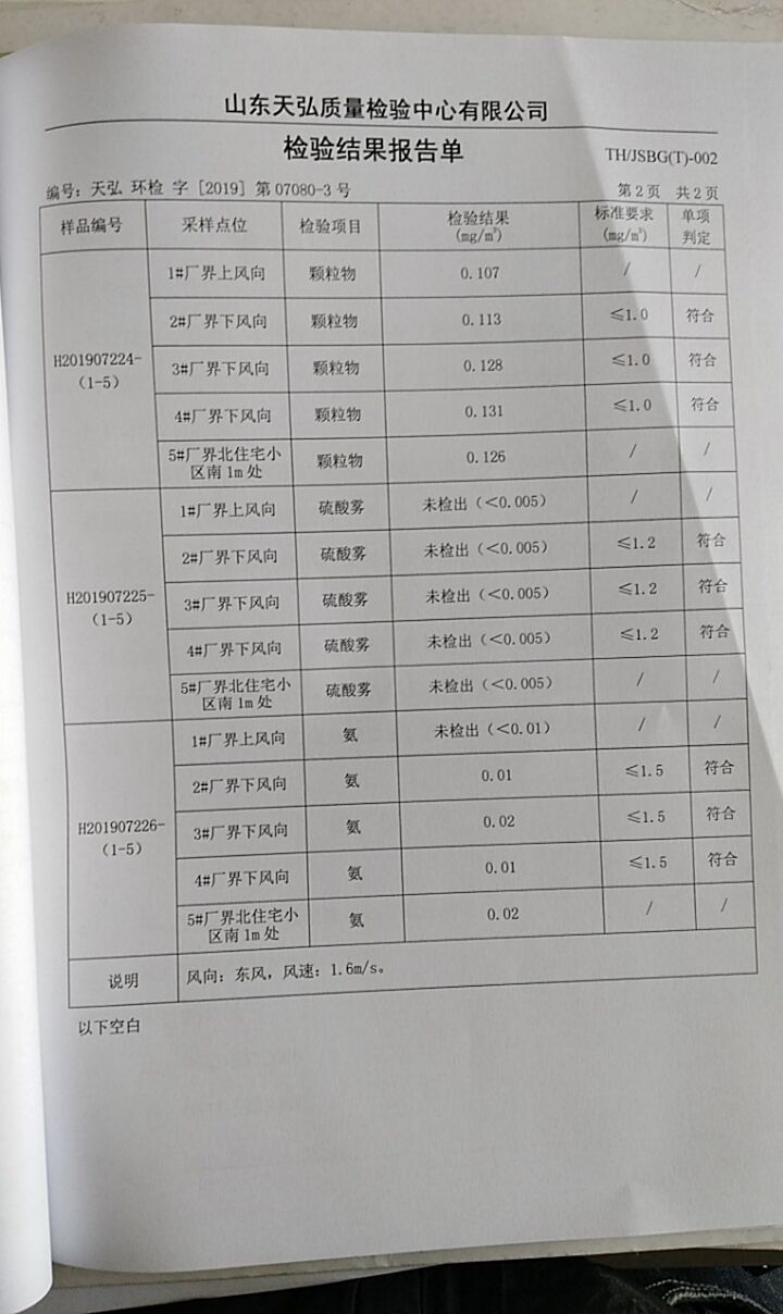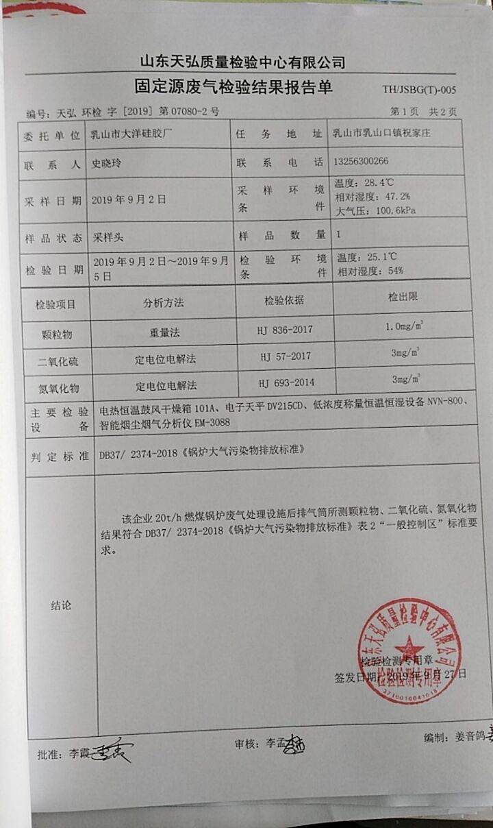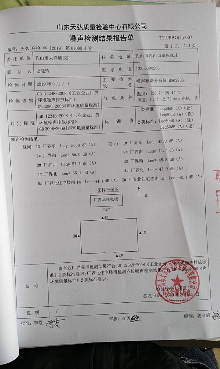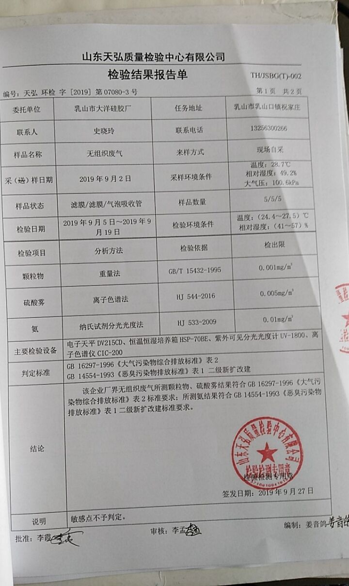 乳山市大洋硅膠廠委拖山東天弘質(zhì)量檢驗中心第三季度環(huán)境檢驗報告如下: