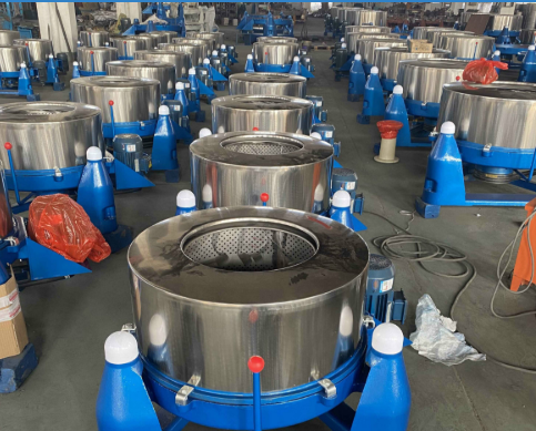 工業(yè)脫水機(jī):按容量大小分為:φ500、φ600、φ800、φ1200、φ1500、φ1800、φ2000脫水機(jī)。該機(jī)為三足懸擺式結(jié)構(gòu),由三角底盤、鑄腳、園底盤、轉(zhuǎn)鼓、外殼、電機(jī)等組成。轉(zhuǎn)鼓、外殼均采用不銹鋼制作。由三角膠帶傳動(dòng),電機(jī)直接帶動(dòng)起步輪,使機(jī)器緩步起動(dòng),達(dá)到設(shè)計(jì)轉(zhuǎn)速,以保證機(jī)器運(yùn)轉(zhuǎn)平穩(wěn),機(jī)器內(nèi)有制動(dòng)裝置,制動(dòng)性能好,能使機(jī)器在短時(shí)間內(nèi)停止運(yùn)轉(zhuǎn) 。