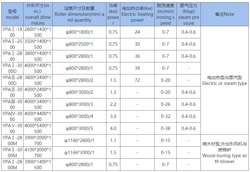 一、燙平機主要技術(shù)參數(shù)(Main Technical specifications)
