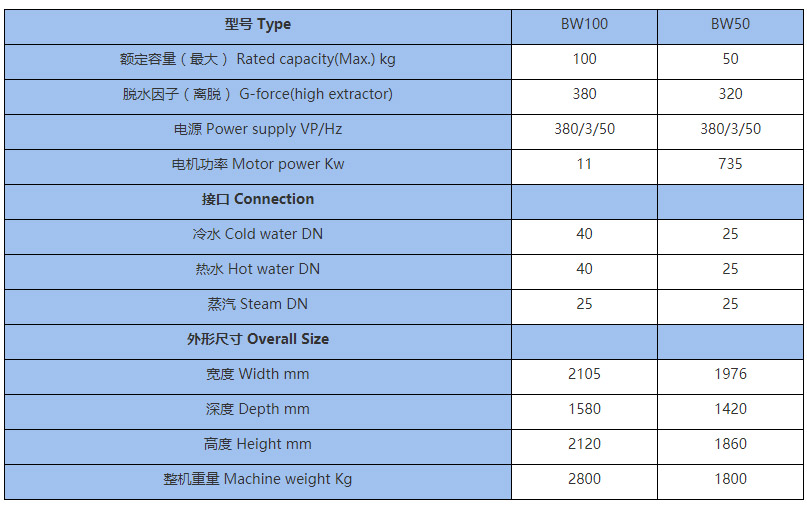 一、衛(wèi)生隔離式洗衣機主要技術(shù)參數(shù)(Main Technical specifications)